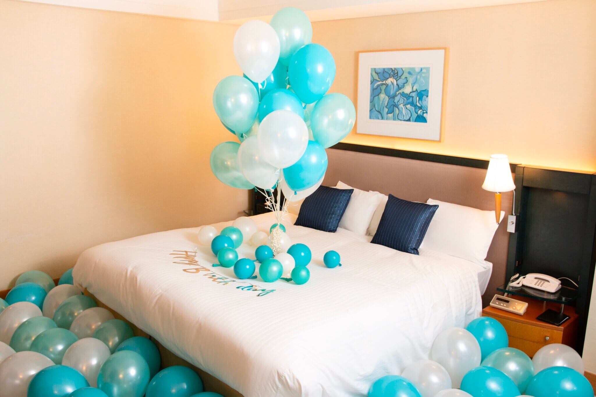 ①ベッド上:バルーン(ガス)18個 7,200円