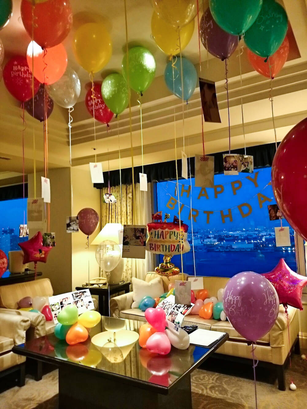またご家族やご友人様たちのお写真をいただき、バルーンに貼りつけて、お部屋に入った瞬間に「わぁ!!」と声の上がるような空間にさせていただきました。