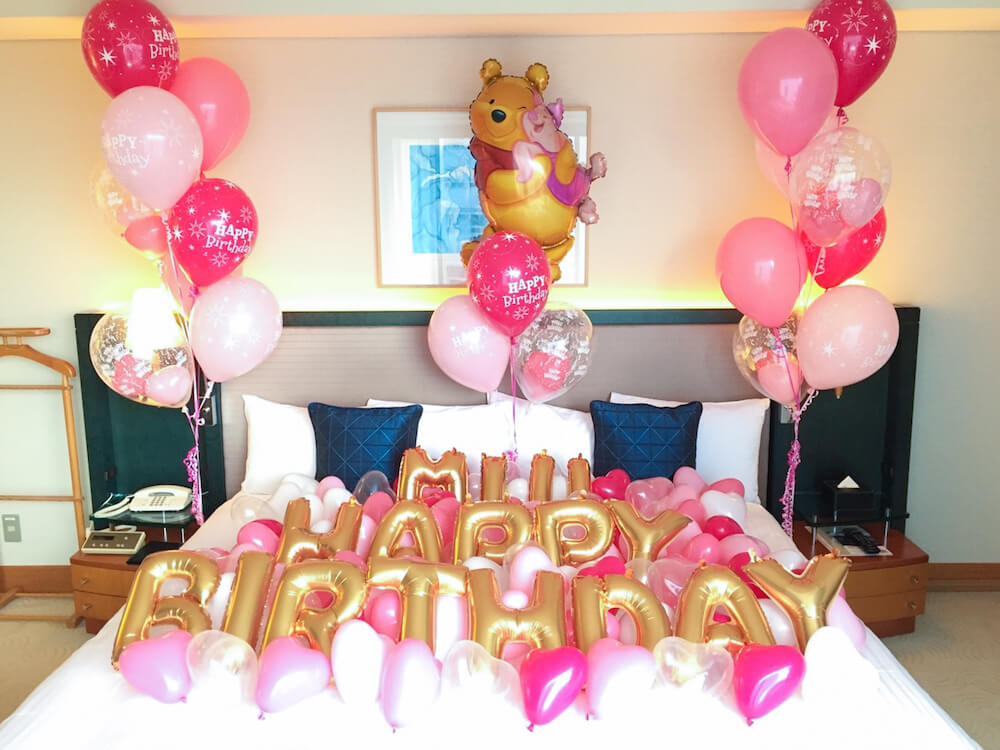 プーさんが大好きな彼女様のためにプーさんバルーンを入れてほしいというご要望をいただき、とっても可愛いバルーンをメインに置かせていただきました。