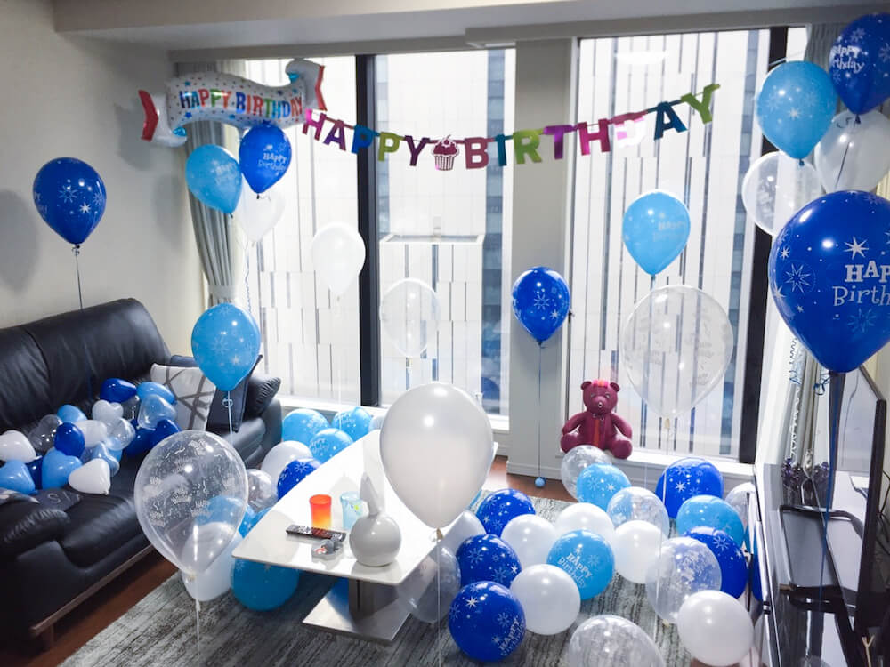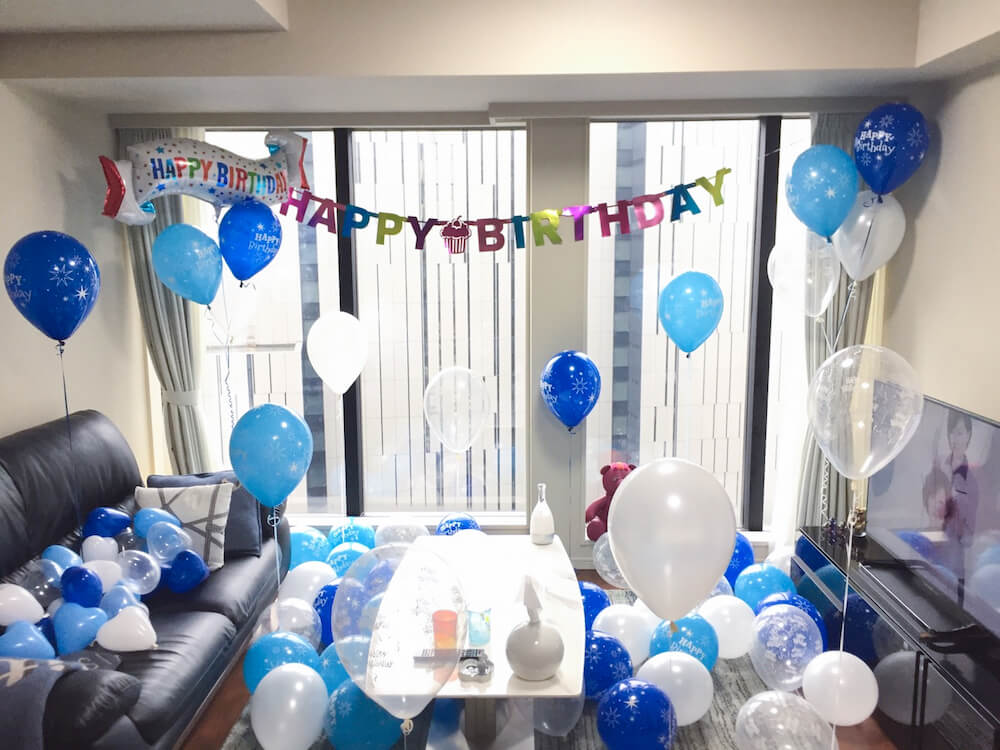 【M-8】お部屋をブルーバルーンでバースデー装飾サプライズ