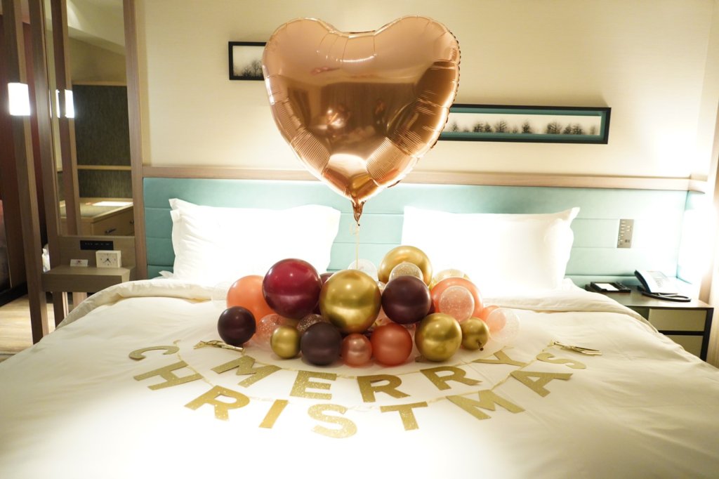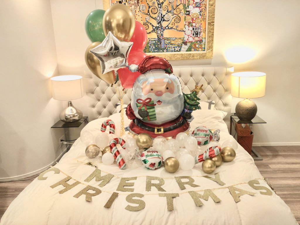 今だけ限定のクリスマスデザインのバルーンにアレンジして特別感を演出してみてはいかがでしょうか。