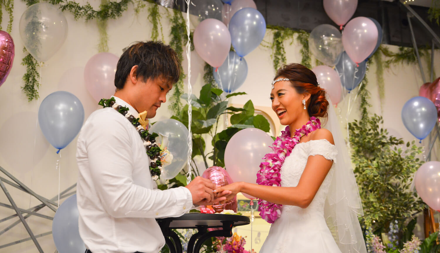 お二人の愛がつまった風船を一緒に開くとハートの風船が綺麗に舞います。スパークする瞬間のドキドキ、ワクワクで会場が一つになる、おすすめの演出です。