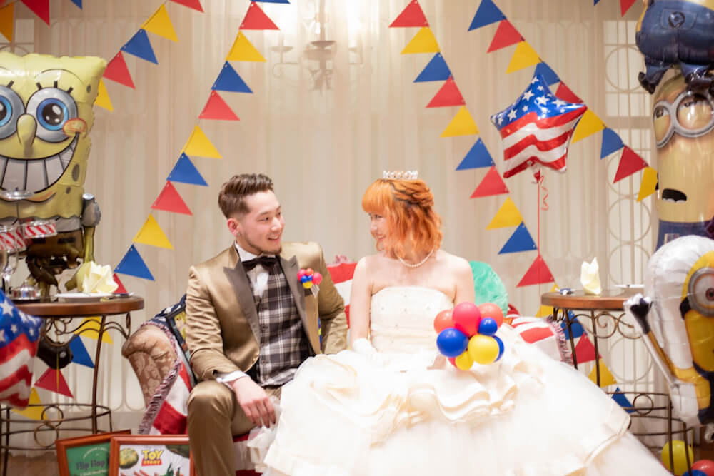式場や二次会会場のゲストテーブルにバルーンを装飾いたします。